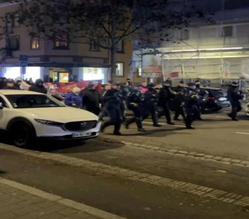 当局派出防暴警察将这一小群暴徒护送前往体育场,在长达一小时的路程中,他们身后跟着一长列警车,两侧有手持防暴盾牌的宪兵护送。